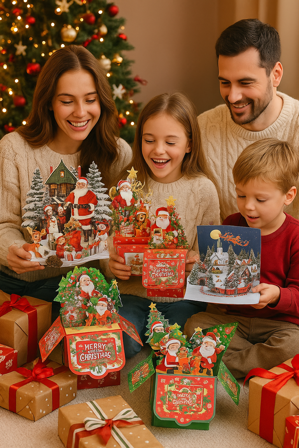 Each card is like unwrapping a little holiday gift — from twinkling trees to merry Santas, sparkling snowflakes to festive scenes. Kids giggle, adults smile, and everyone keeps these cards proudly on display all season long.