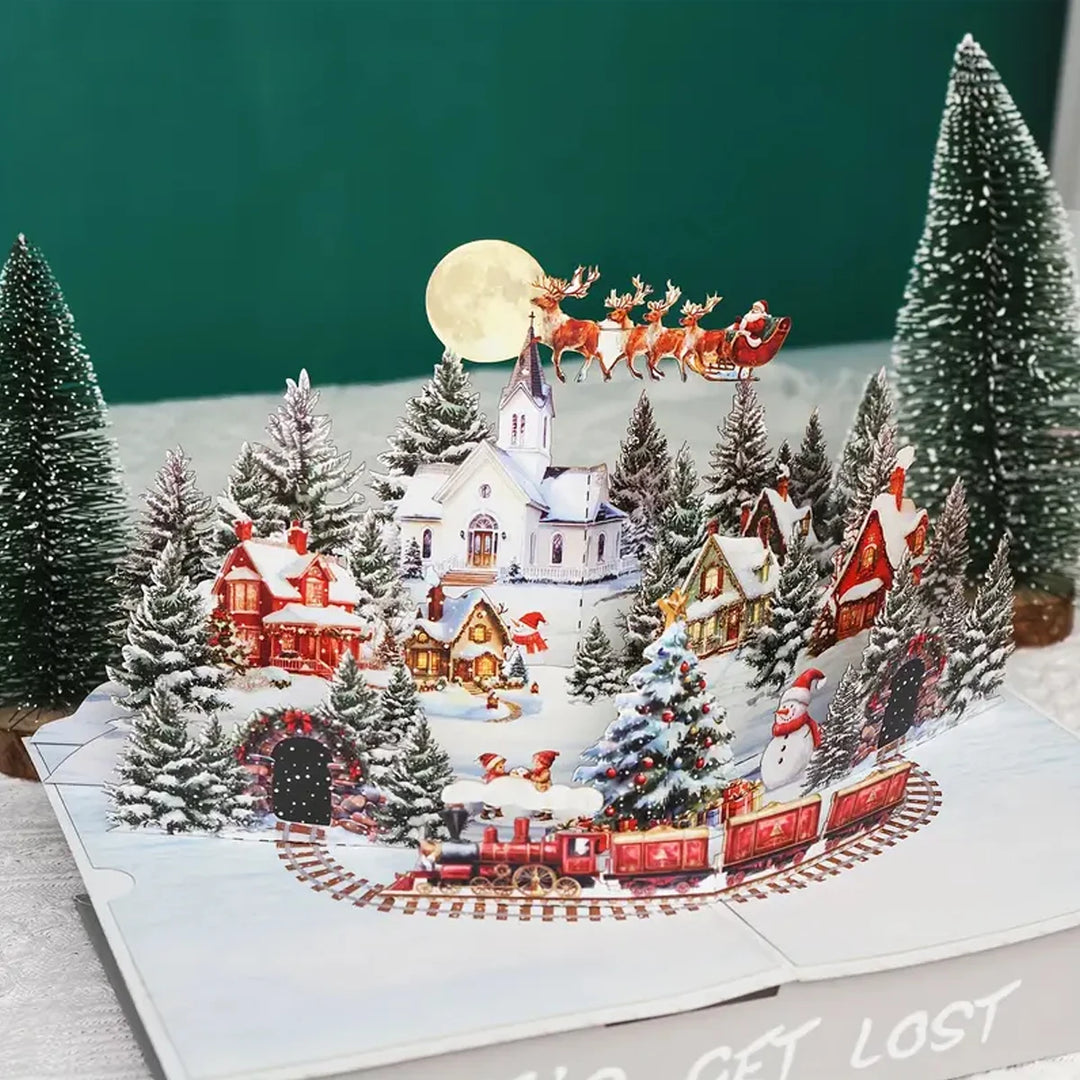 Every card arrives flat and pops open into a 3D holiday scene. Each set includes: