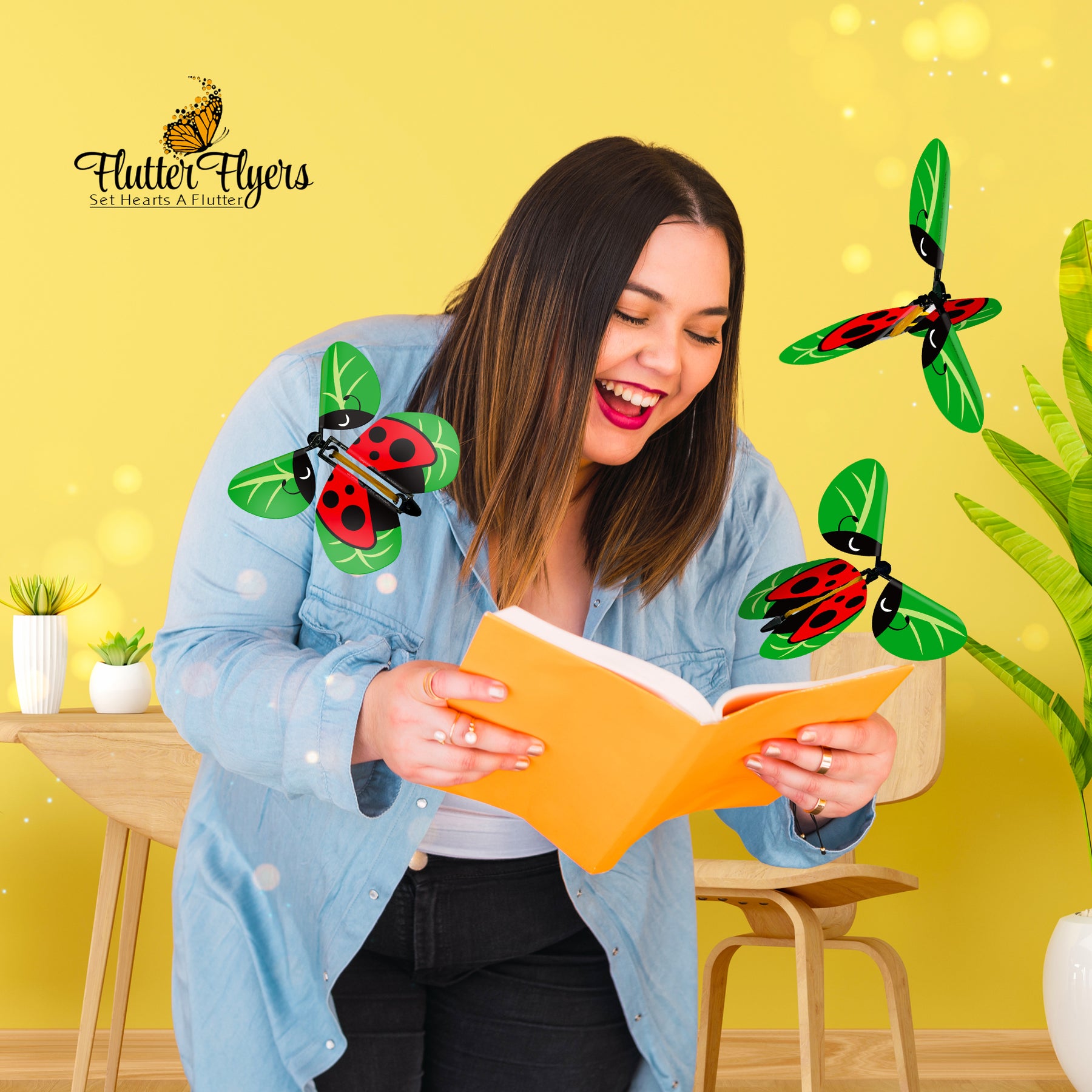 Using them is easy! All you do is wind up your FlutterBug's band 30-40 times then tuck them away into a book, book or our FlutterBox!