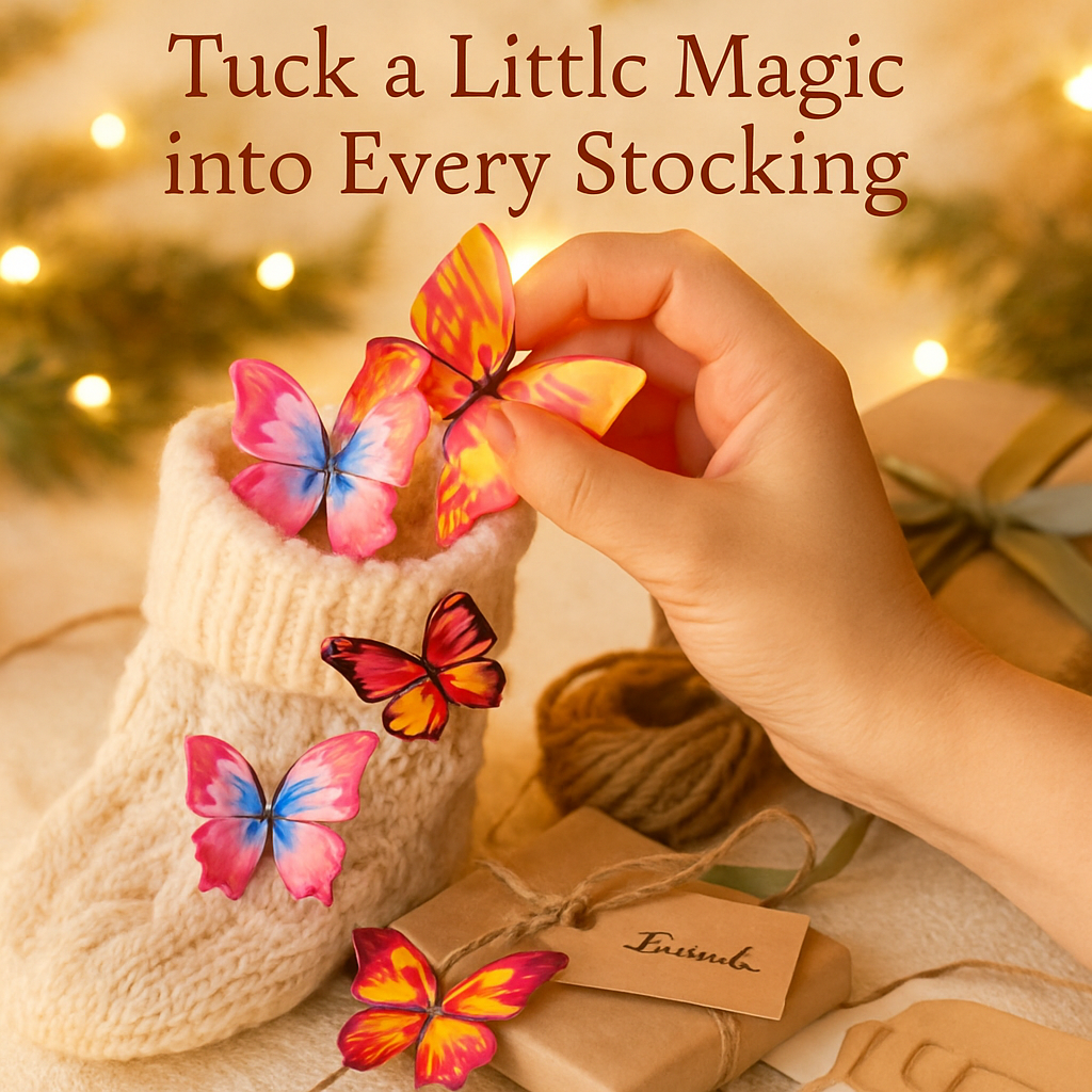 Slip a few Flutter Stickers into a stocking and watch faces light up! Each glossy butterfly flutters with color and charm — fun for kids, grandparents, and everyone in between. Lightweight, affordable, and delightfully unexpected, they’re the kind of stocking stuffer that feels magical without breaking the budget.