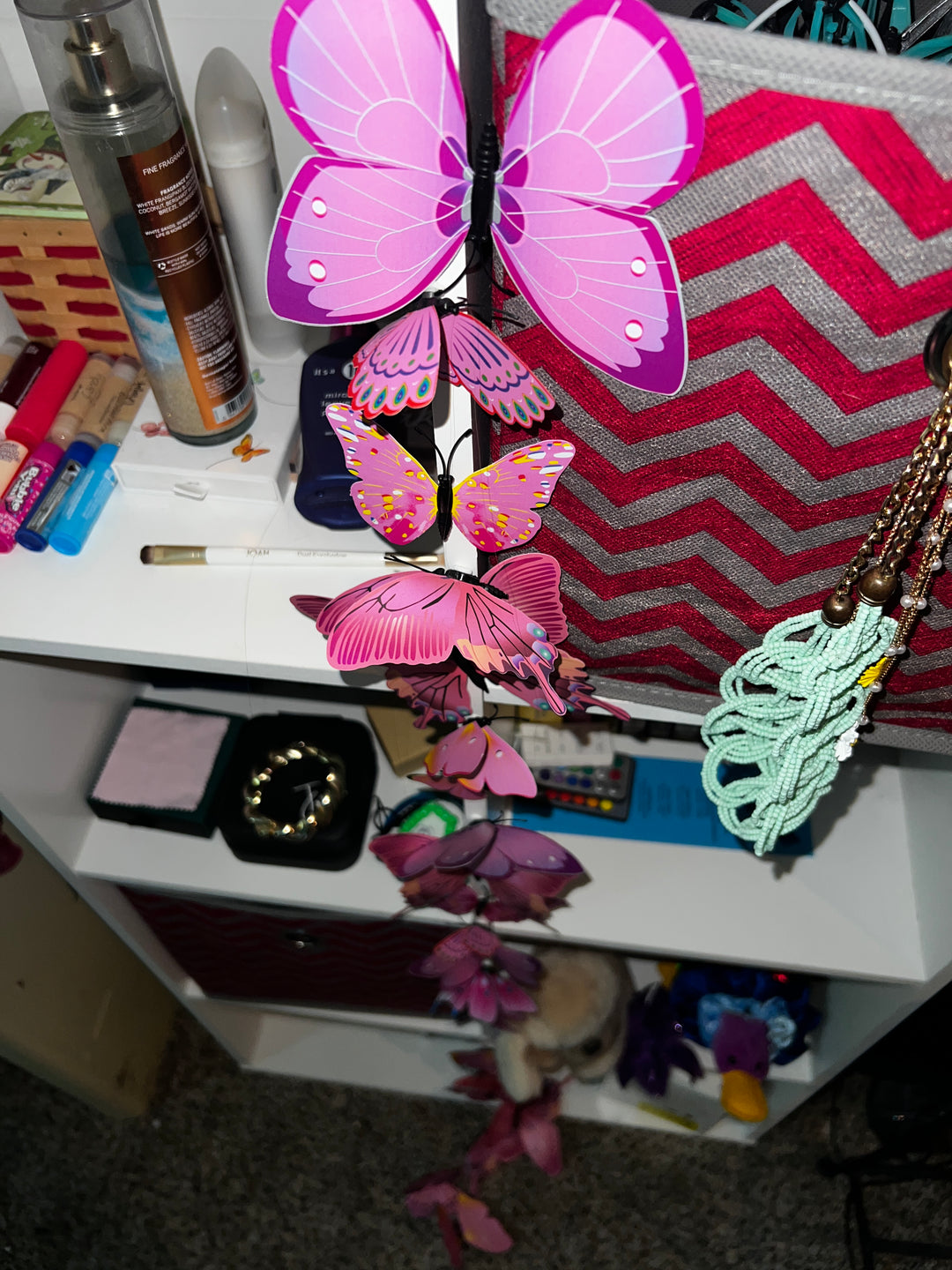 No—these butterflies are not the wind-up flying kind. They’re designed for display. Each butterfly includes a built-in magnet for fridges and metal surfaces. For non-magnetic spots, we include little double-sided sticker buttons so you can place them on walls, mirrors, windows, and more.